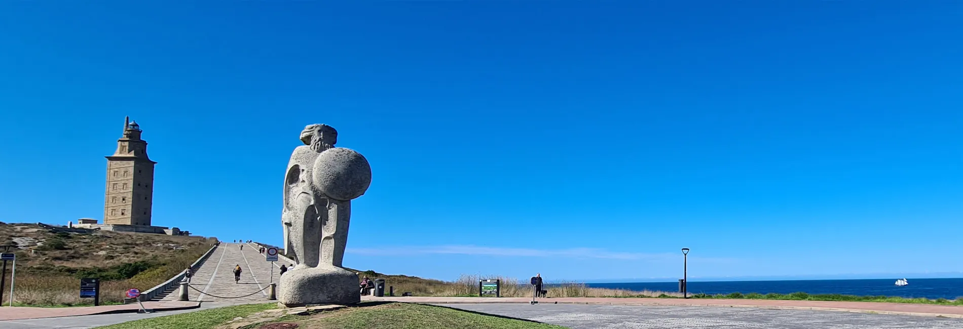 Detalhes da visita guiada| O que vamos ver nesta visita guiada? | A Torre de Hércules pelo exterior e o Jardim Escultórico. Também é possível visitar o interior da Torre; por favor, contacte-me. |